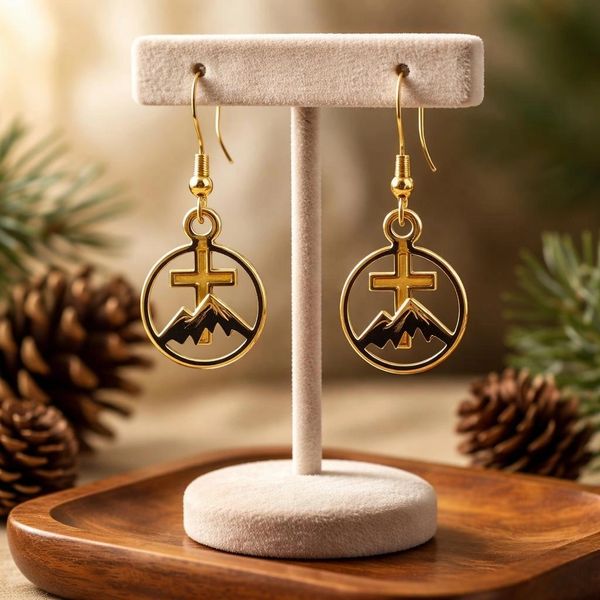 Hook earrings available in gold or silver-tone. Mountains and Cross are separate charms joined together to make one beautiful earring. .75"L x .50"W