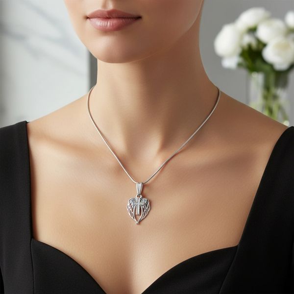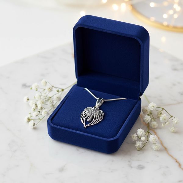 Silver Angel Wing and Cross Necklace